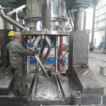 雙行星混合攪拌機(jī)的兩個雙攪拌框在桶體內(nèi)同時公轉(zhuǎn)并自轉(zhuǎn),可實現(xiàn)抽真空、加熱冷卻等,根據(jù)情況可實現(xiàn)轉(zhuǎn)速調(diào)節(jié)。如果配備多個攪拌桶,還可實現(xiàn)一臺雙行星混合攪拌機(jī)連續(xù)化作業(yè)。如果匹配液壓出料機(jī),則會讓出料變得更加方便。